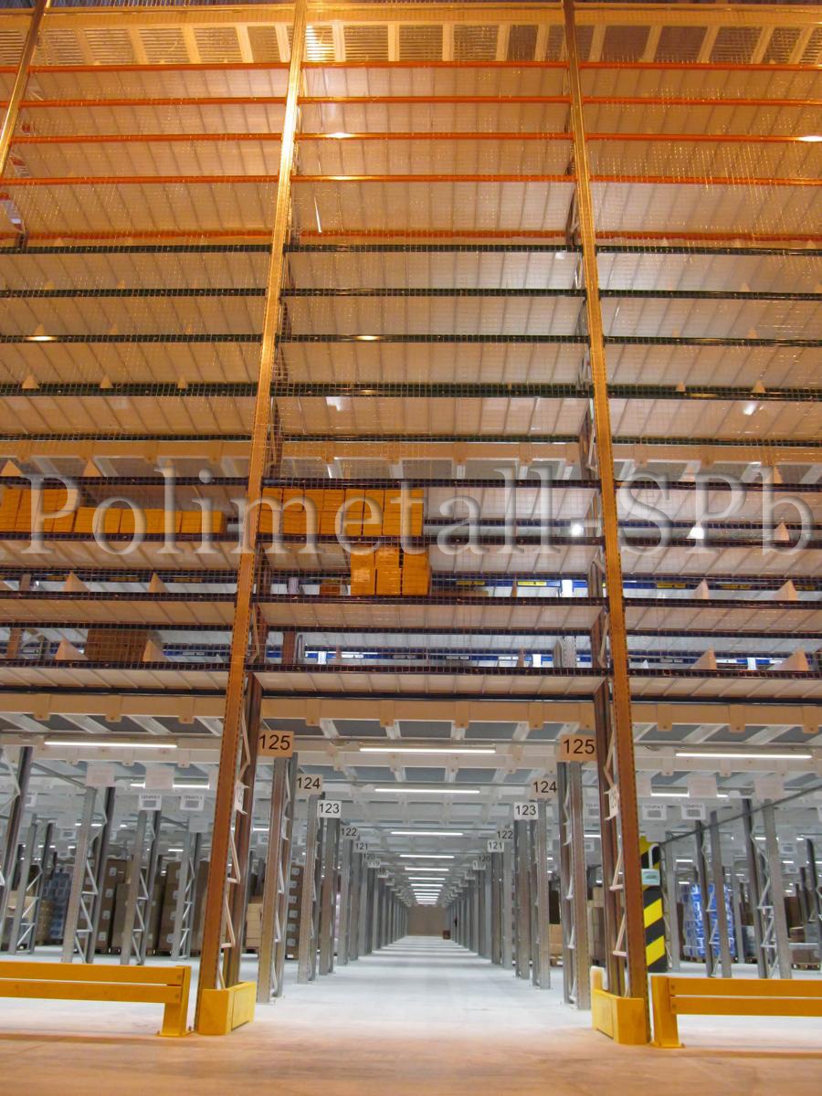 Компания «Полиметалл-СПб» разработала проект 5-ти этажного мезонинного стеллажа общей площадью 11 500м2. Монтаж мезонина находится на стадии завершения.